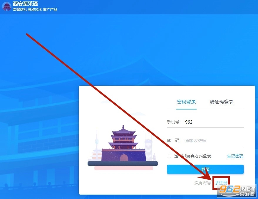 在弹出的链接中点击【去注册】