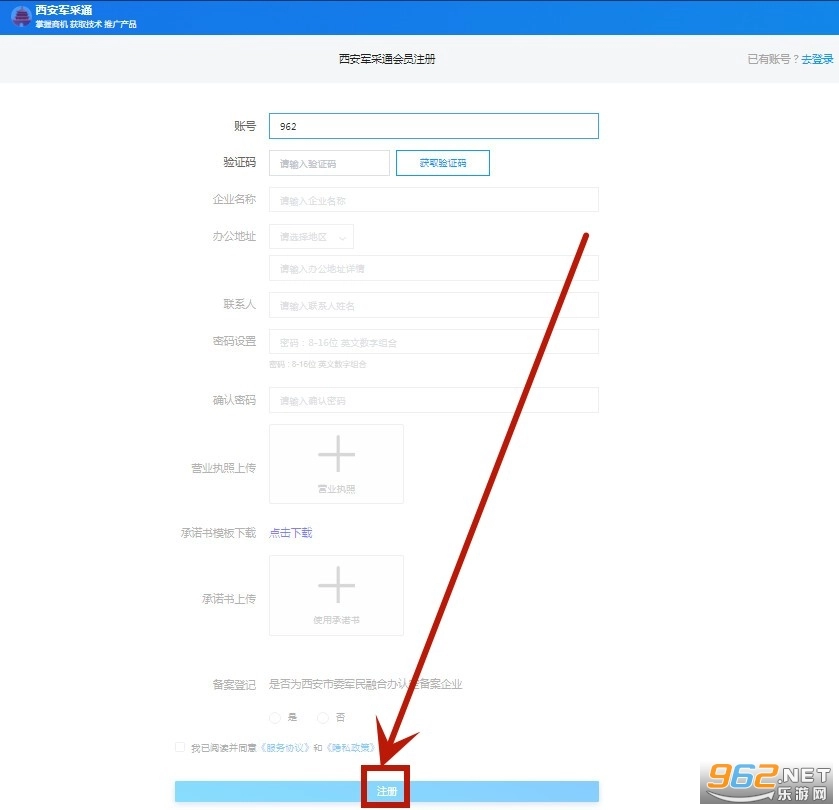 并打开军采通,点击【新用户注册】