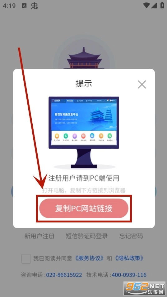 复制完成后,打开浏览器,将复制的地址粘贴进去,即可进入西安军采通平台。