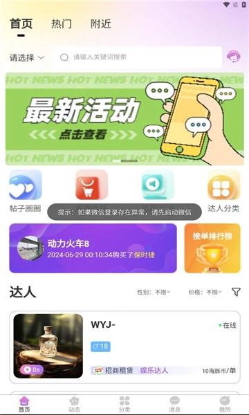 海豚圈圈——您的社交新选择,这是一个以组织活动、交友为核心的互动平台。在这里,您能够轻松发现并参与各类有趣的活动,结识志同道合的朋友,摆脱日常生活的单调,尽享丰富多彩的社交体验。