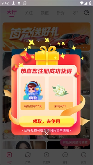 注册成功获得奖励