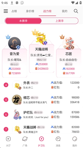 全站设有总排行榜,前10名可上榜(该护卫队为多名主播提供护卫服务,若有N个主播进入前10,护卫队将获得N×200个点数的增加)。
