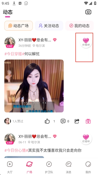 除此之外,软件内还设有广场和护卫队板块,在广场上看到喜欢的内容,你可以点击打招呼。