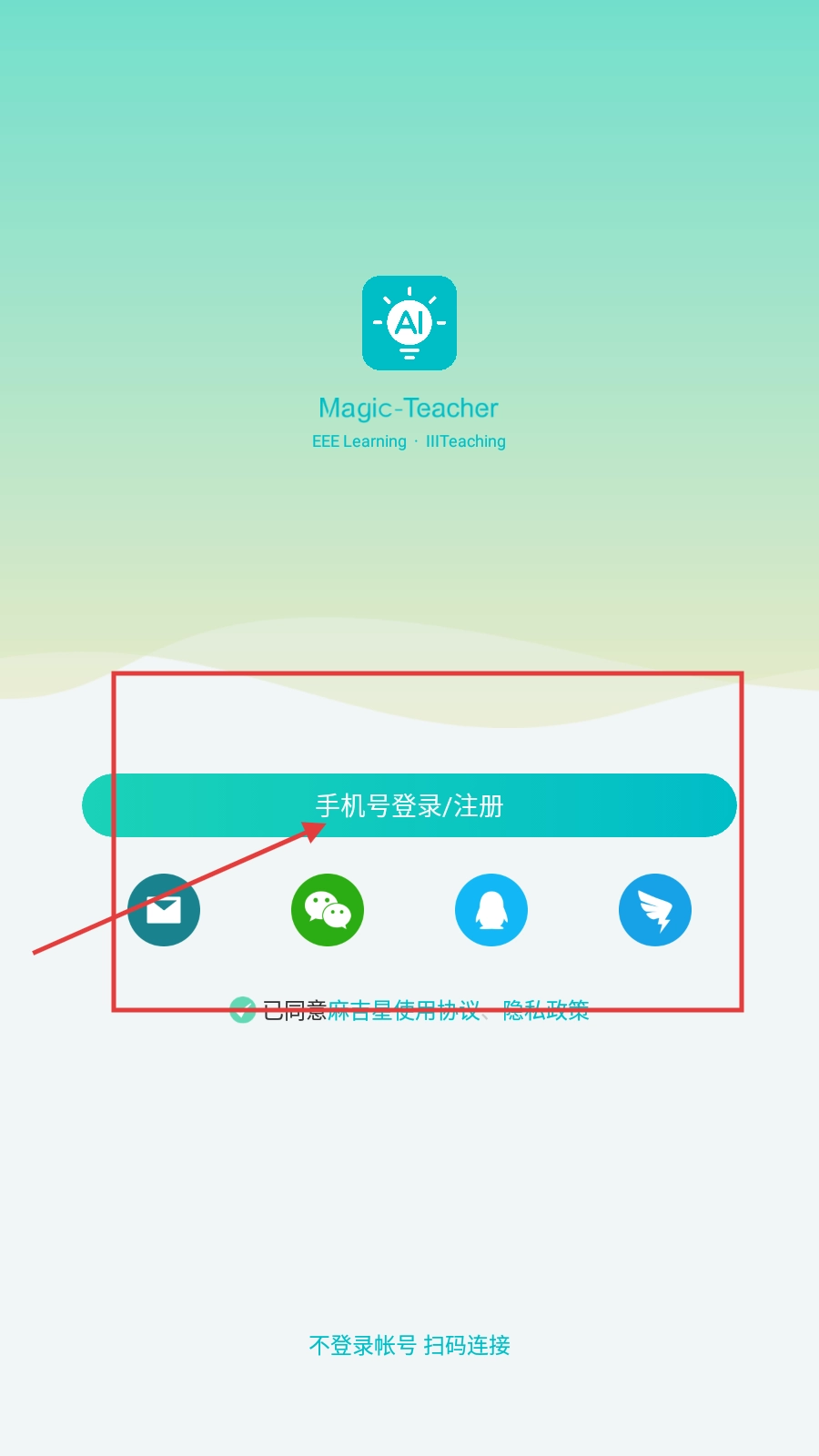 若未登录账号,可通过扫码连接并登录教学系统,进入【Magic-Teacher】的相关功能界面。