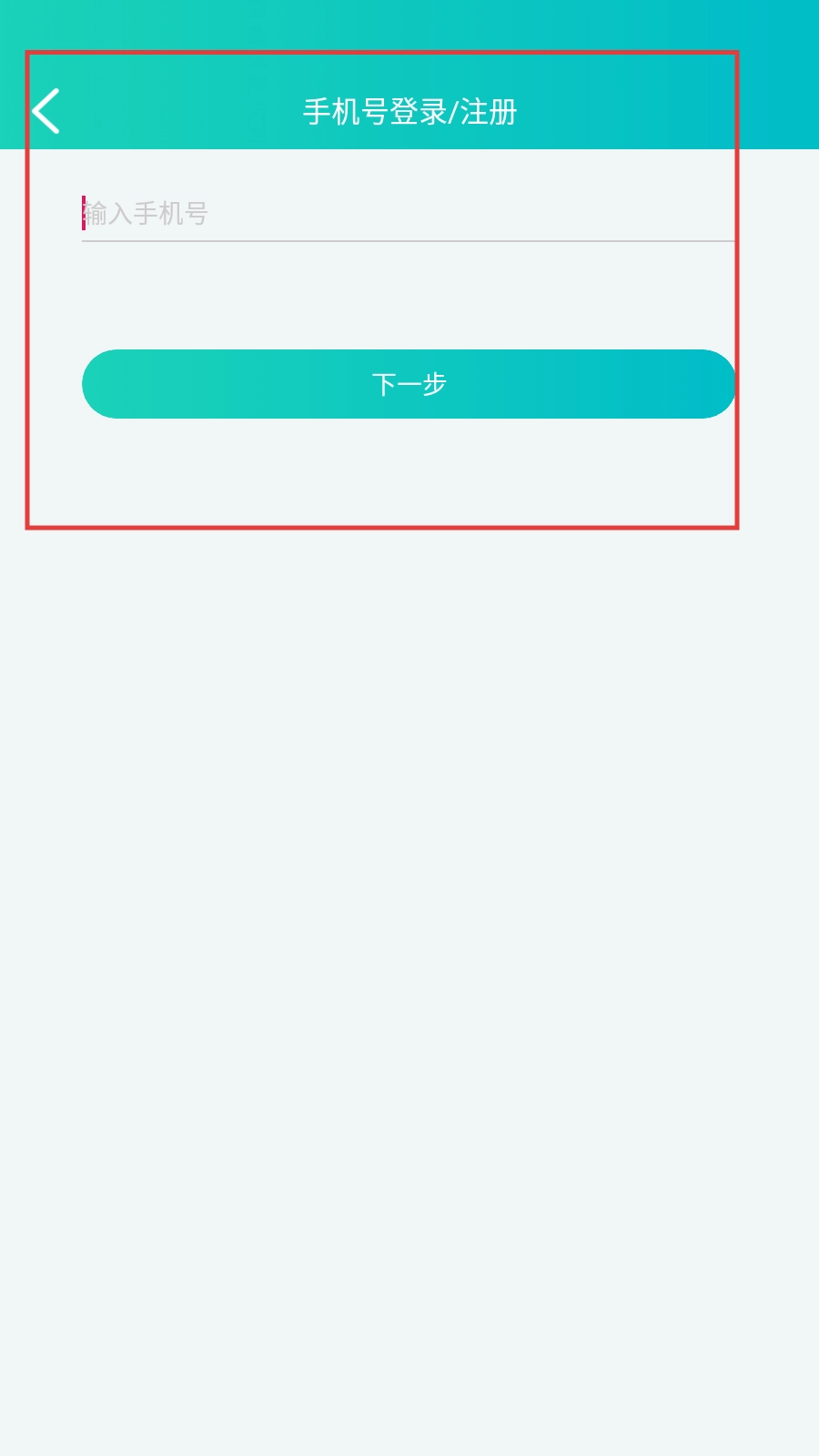 进入【手机号登录/注册】页面后,输入手机号,再点击【下一步】按钮。
