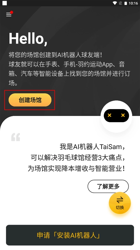 创建好场馆后,即可申请安装AI机器人协助管理和运营羽毛球馆。