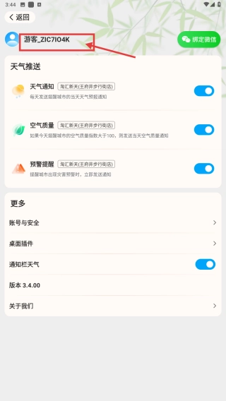 还能查看账号信息,以及天气推送的相关设置,像天气通知、空气质量通知、预警提醒这类功能的开关状态都能看到。