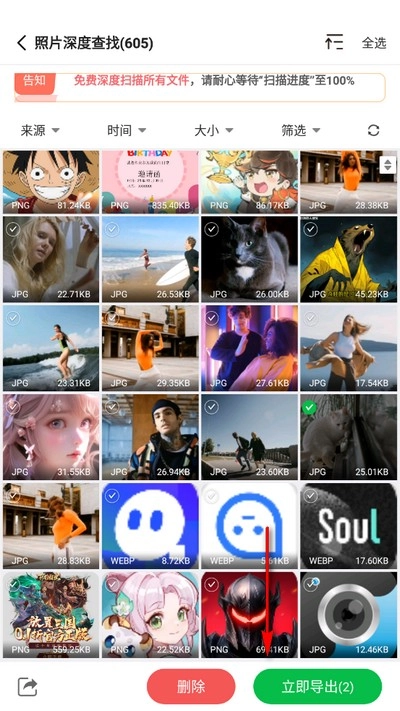 通过图片扫描功能,能够提取出微信底层存储的照片,之后可以对这些照片执行删除操作,或者将它们导出以完成找回。