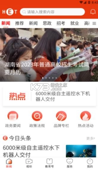 湖南推出了一款主打教育新闻阅读的软件,在这里,用户不仅能浏览湖南本地的各类新闻资讯,还能免费获取最新的教育动态——包括每年的考试时间安排、招生政策的变动等信息都会提前告知,平台还会推送优质的网课视频供大家观看。因此,这款软件非常适合教育从业者、学生及其他关注学习的人群使用。