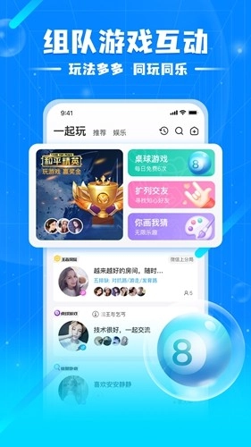 聊天室、卡拉OK、扩展包、电子竞技、跆拳道、大型约会娱乐派对,还有能随时随地进行的多人语音聊天。
