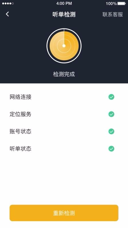 听单检测功能可帮助用户快速查看自身当前的接单状态是否正常。