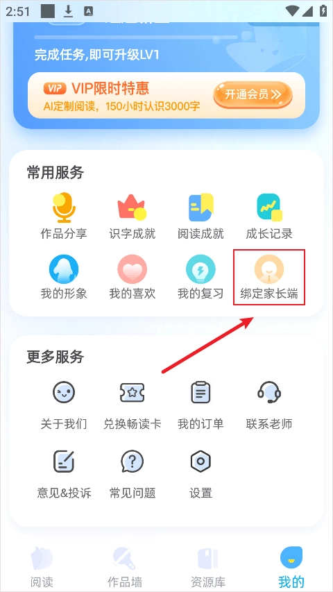2、然后选择绑定家长端
