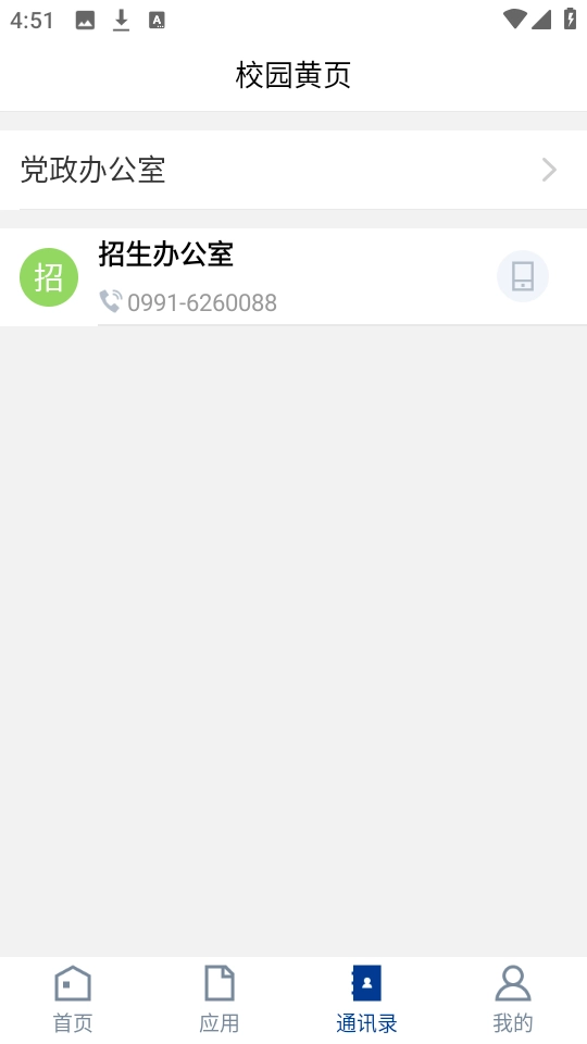 接着点击下方的“通讯录”,就能实时查看招生办公室的电话联系方式。