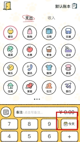 1、在记账界面点击标记处的日历本