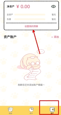 2、选择资产界面,设置我的预算保存即可