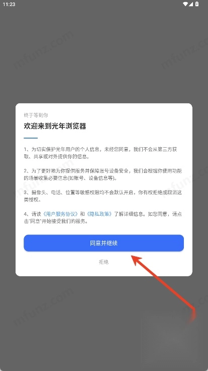 打开光年浏览器点击同意并继续