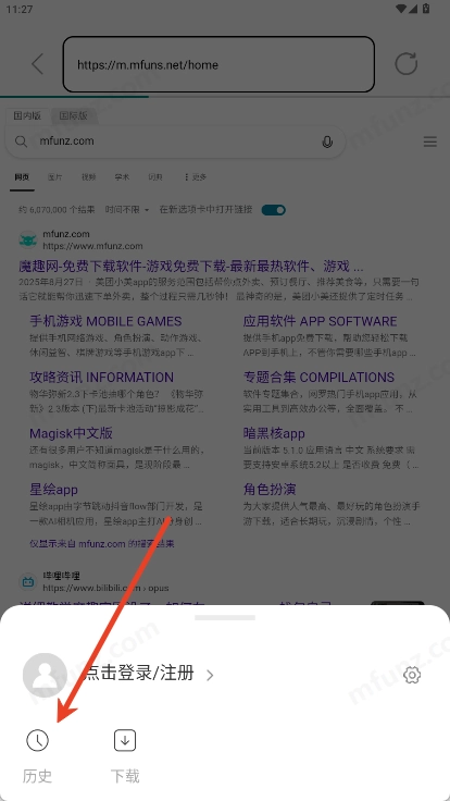 点击右下角的三条横线图标,再点击“历史”选项,就能查看之前所有的搜索记录了。