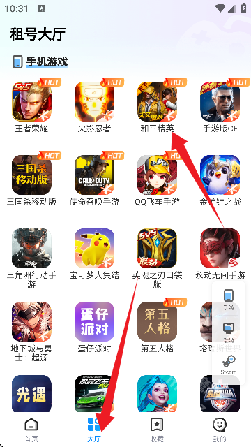 选择游戏大厅中的和平精英。