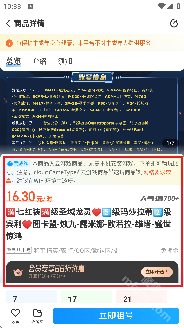 查看账号信息与交易须知后,点击【立即租号】按钮即可完成交易。