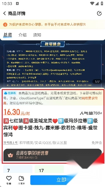 在商品列表中选择喜欢的账号,进入详情页。