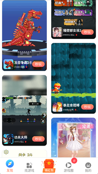 用户可以在“发现”板块畅玩热门小游戏,无需下载,即点即玩。