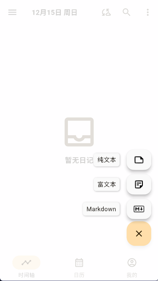 - 时间轴显示:日记按时间轴排列,方便查阅。