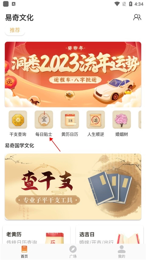 3、完成登录操作后,即可使用各类功能,例如点击每日贴士。