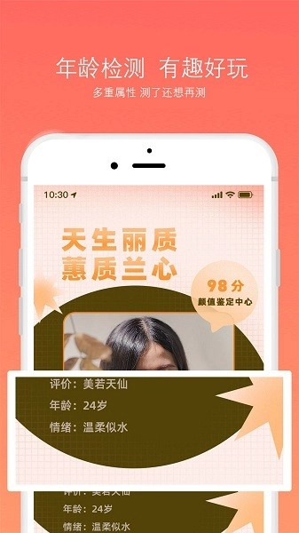 1、智能识别人脸,AI测试脸型,准确分析你的脸,也让你更加了解自己的脸;