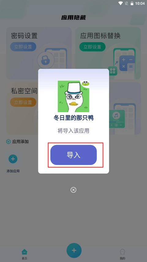 5、完成要隐藏图标的替换后,点击下方的应用添加功能,把游戏、应用添加进来,选好游戏后点击“导入”按钮。