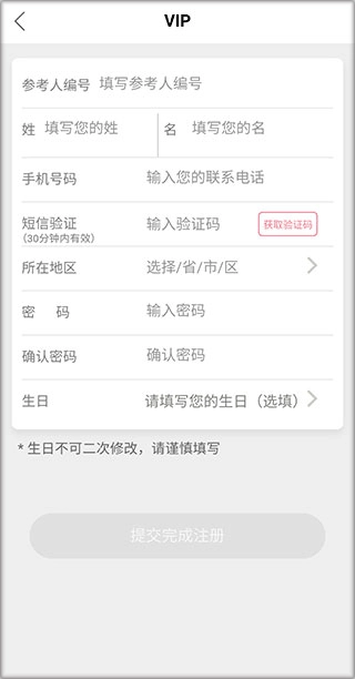 完成后就会进入【vip资料填写】页面,除生日信息外,其余均为必填项。