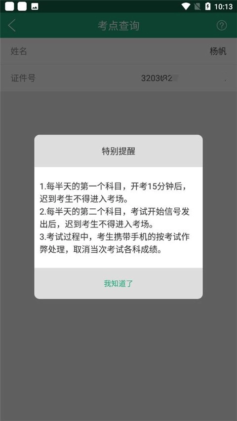 3、至此,即可查看考场信息,以及考前提醒哦。