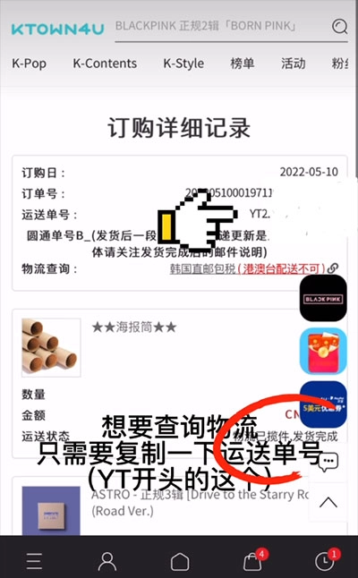 5、找到要查询订单的物流单号(yt开头的)。
