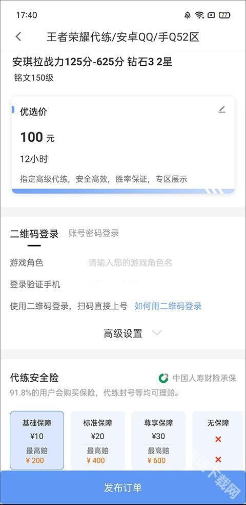 4、最后输入账号相关信息,包括您的游戏角色名、验证号码等内容,接着点击发布订单就可以了。