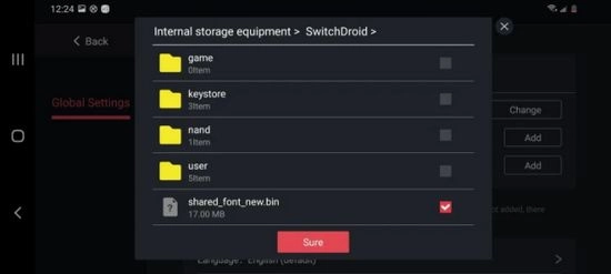 5、还需找到字体bin文件并添加(字体文件位置:根目录→选择switchdroid文件→勾选shared_font_new.bin)。