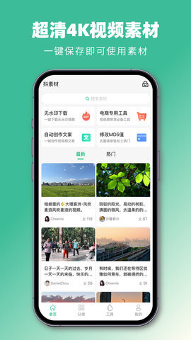 抖素材既是一款视频剪辑应用,也是一个原创视频内容社区。平台汇聚了海量高清无水印视频素材、炫酷视频特效、BGM背景音乐、视频配套文案以及各类素材模板。同时,抖素材还配备了一系列实用功能工具,包括短视频去水印保存、一键提取短视频背景音乐文件、一键提取短视频配音文案、调整短视频镜像效果、视频变速、去除原声、视频倒放、批量解析等。这些工具均可作为抖音、快手、小红书等短视频平台创作短视频时的辅助工具。