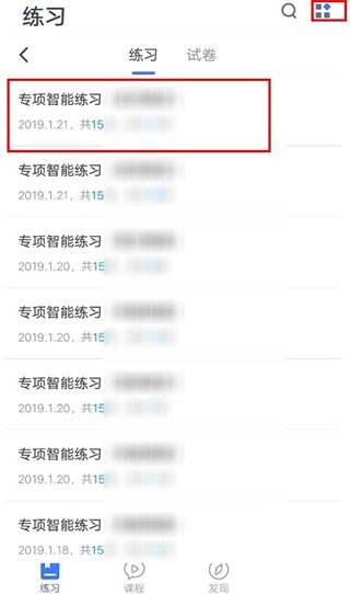 3、随后会呈现出自己此前做过的所有题目,从中挑选一个自己想要查看的,点击一下即可。