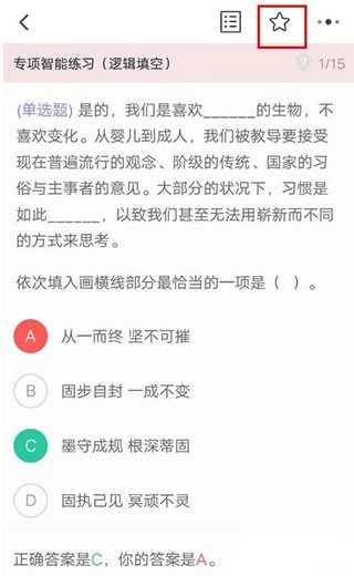 7、倘若你感觉自己对这个题目还没有完全理解,那就点击右上角的星星按钮,将其收藏起来。