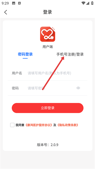 3、在【登录】页面,有【密码登录】和【手机号注册/登录】两种方式可供选择,进行操作前需要勾选相关协议。