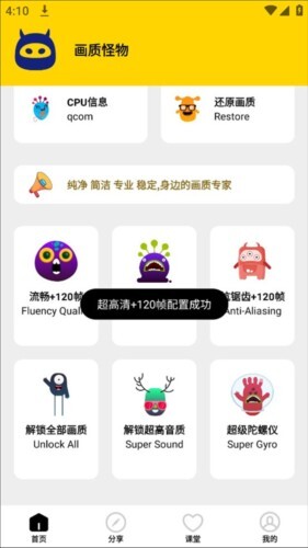 3、安全绿色可放心使用,支持120帧率极致画质更新,带来超强体验,一键即可解锁多种画质选项