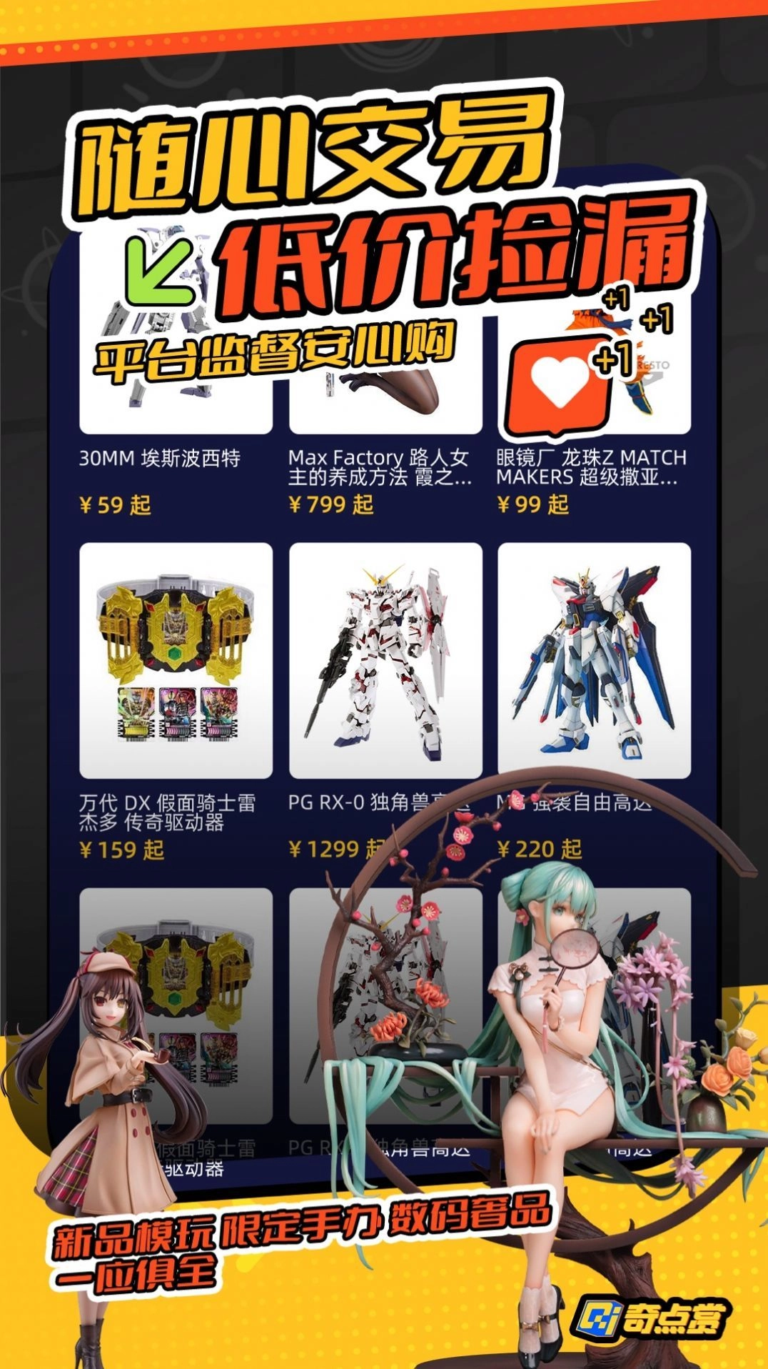 潮玩爱好者的福利来啦!奇点赏,当下潮流圈超火的购物平台!这里潮玩手办种类丰富到让人眼花缭乱,扭蛋、限量周边应有尽有,正版联名款轻松入手,价格还十分亲民,既省钱又让人放心。完全不必担心买错,支持无理由退换,购物毫无风险。物流速度飞快,只需静静等待心仪宝贝送达。售后服务更是一流,有任何问题随时都能咨询,贴心服务全天候在线。热爱潮玩的你,赶紧来奇点赏,开启属于你的炫酷收藏之旅吧!
