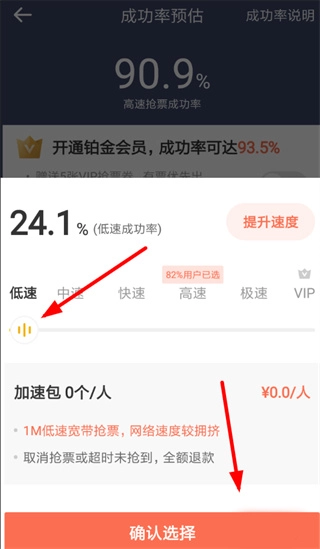 3、只需把进度条滑至左端,设为低速状态并确认,就能成功取消加速包,十分方便实用!