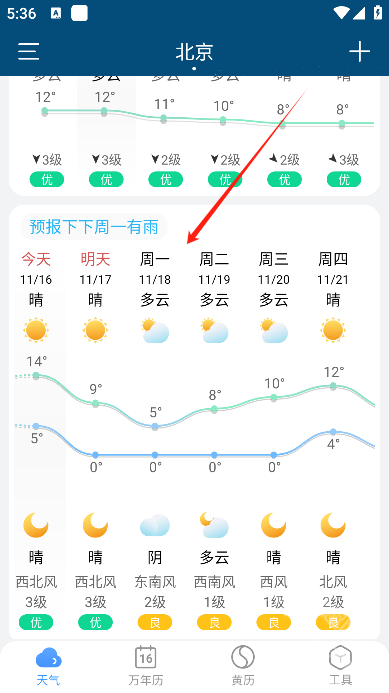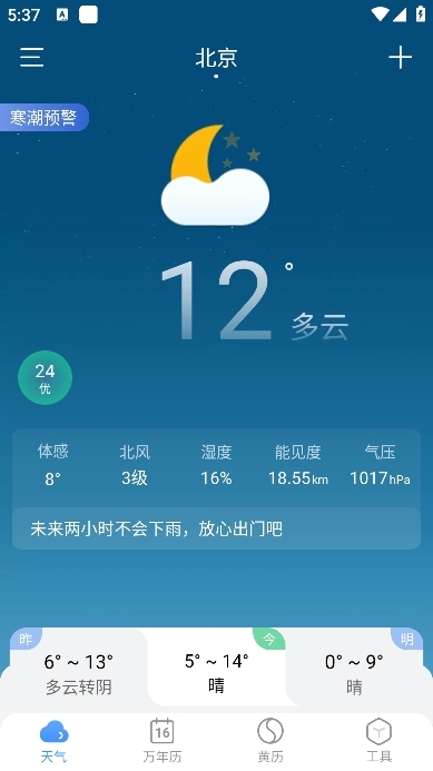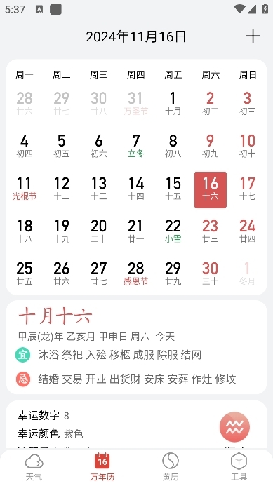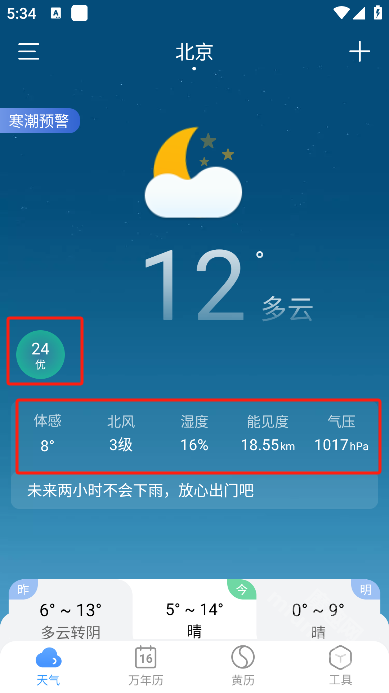 2、功能丰富多元:除了基础的天气预报服务外,还整合了黄历查询、空气质量监测、星座运势等实用工具,全方位提升用户的使用体验。