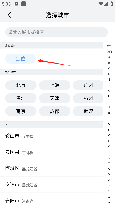 2、接下来需要用户开启定位功能以获取当前所在位置,若用户不想开启定位,也能够手动选择位置。