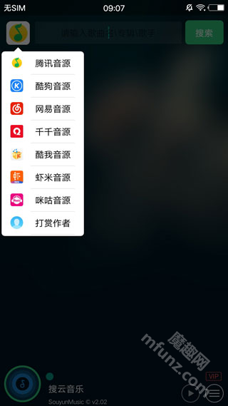 2、进入该页面后,点击左上角的搜云小图标,即可在此直接切换音源。
