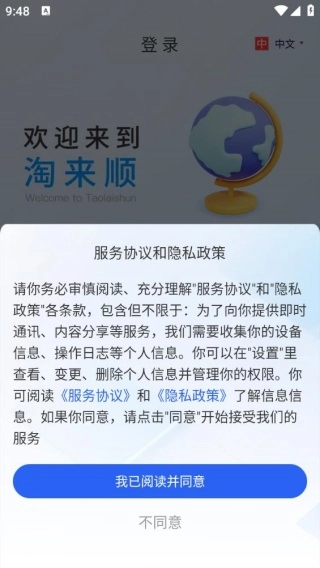 1、安装软件并打开后,界面下方会弹出服务协议与隐私政策的提示,点击“同意”按钮即可。