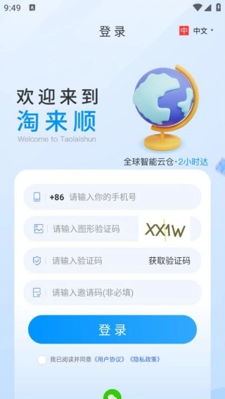 2、直接进入登录界面,输入手机号与验证码后,点击登录按钮即可完成登录操作。