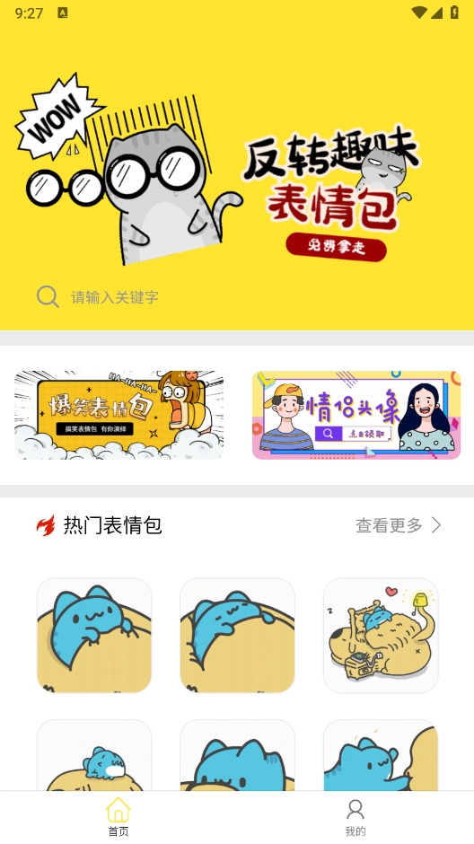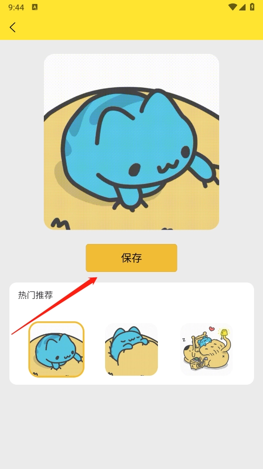 2、打开软件后,在首页能看到不少有趣的表情包素材,挑选出自己喜欢的,点击“保存”按钮就可以了。