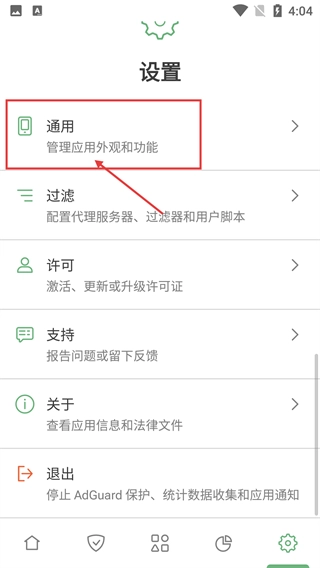 2、进入设置页面后,点击【通用】选项,即可进入通用设置界面,对应用的外观及功能相关配置进行管理。