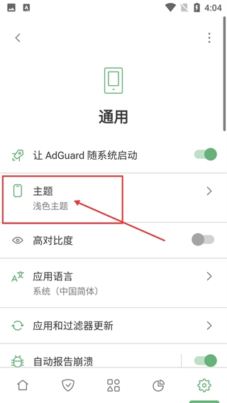 3、进入通用设置页面后,找到显示为“浅色主题”的【主题】选项,点击此选项即可打开主题选择的弹窗界面。