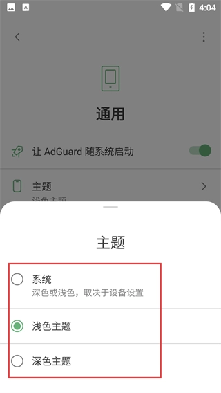 4、打开主题选择弹窗后,可从【系统】【浅色主题】【深色主题】这三个选项里,挑选想要应用的主题样式。